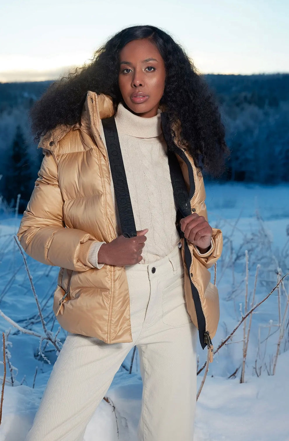 255409 SHORT HOODED PUFFER JACKET - CHAMPAGNE