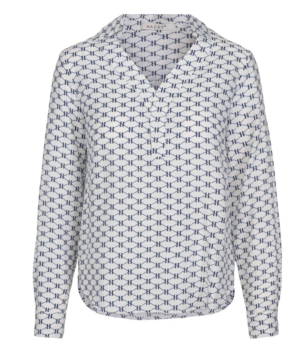 En elegant og lett bluse med et delikat, grafisk print som er tidløst og moderne. Avslappet passform, delikat v-utrigning med krage og lange ermer i en myk viskose kvalitet.