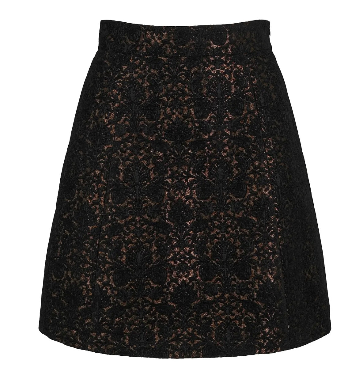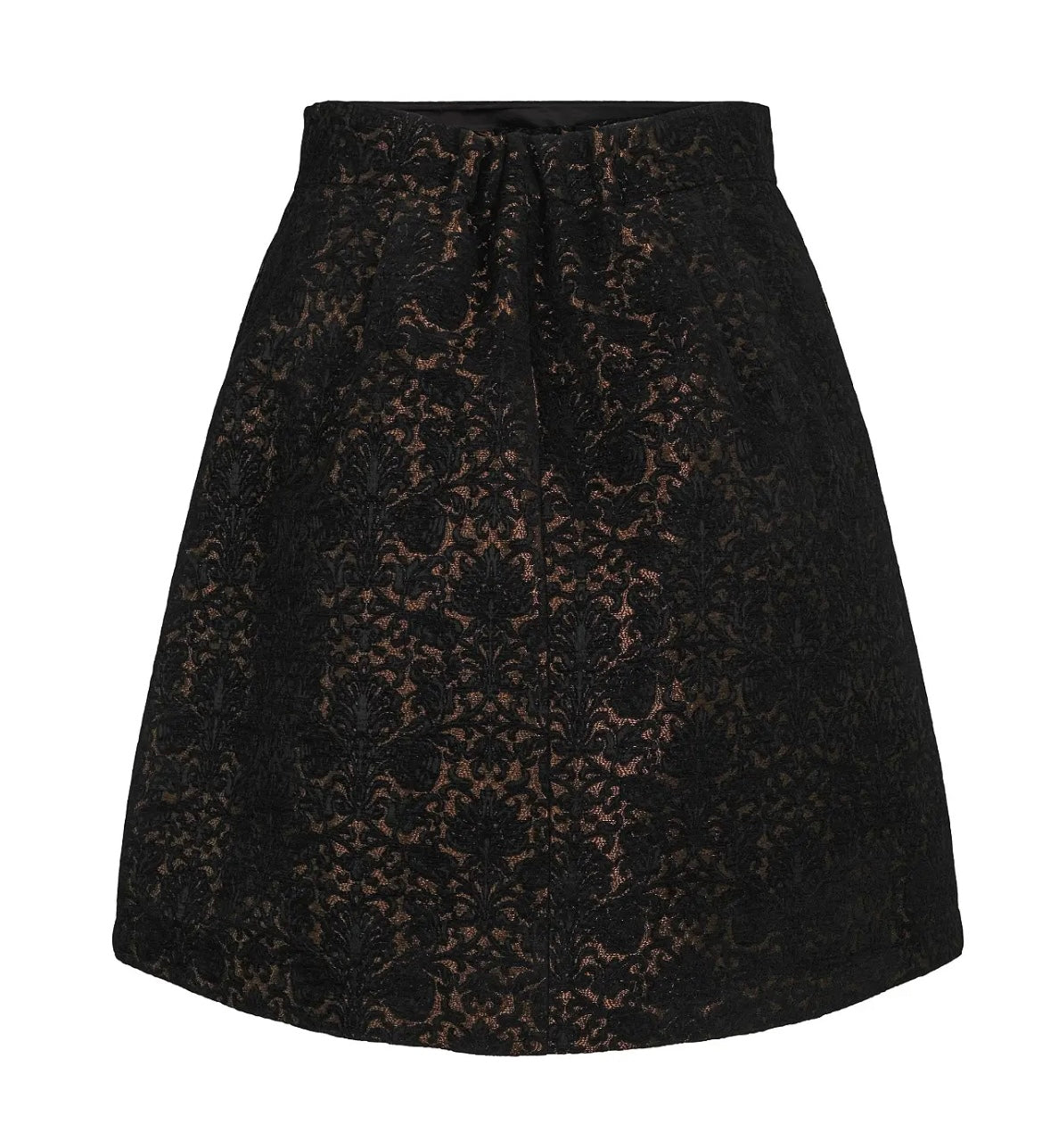 Et elegant og moderne skjørt som virkelig skiller seg ut. Dette skjørtet har en nydelig struktur i stoffet som gir et eksklusivt og festklart uttrykk. Skjørtet har en liten strikk bak i linningen.