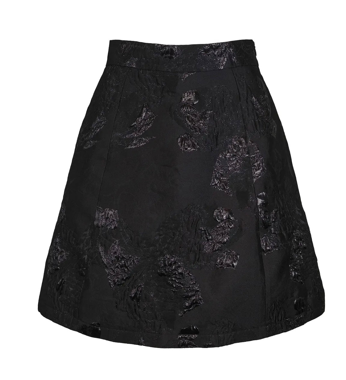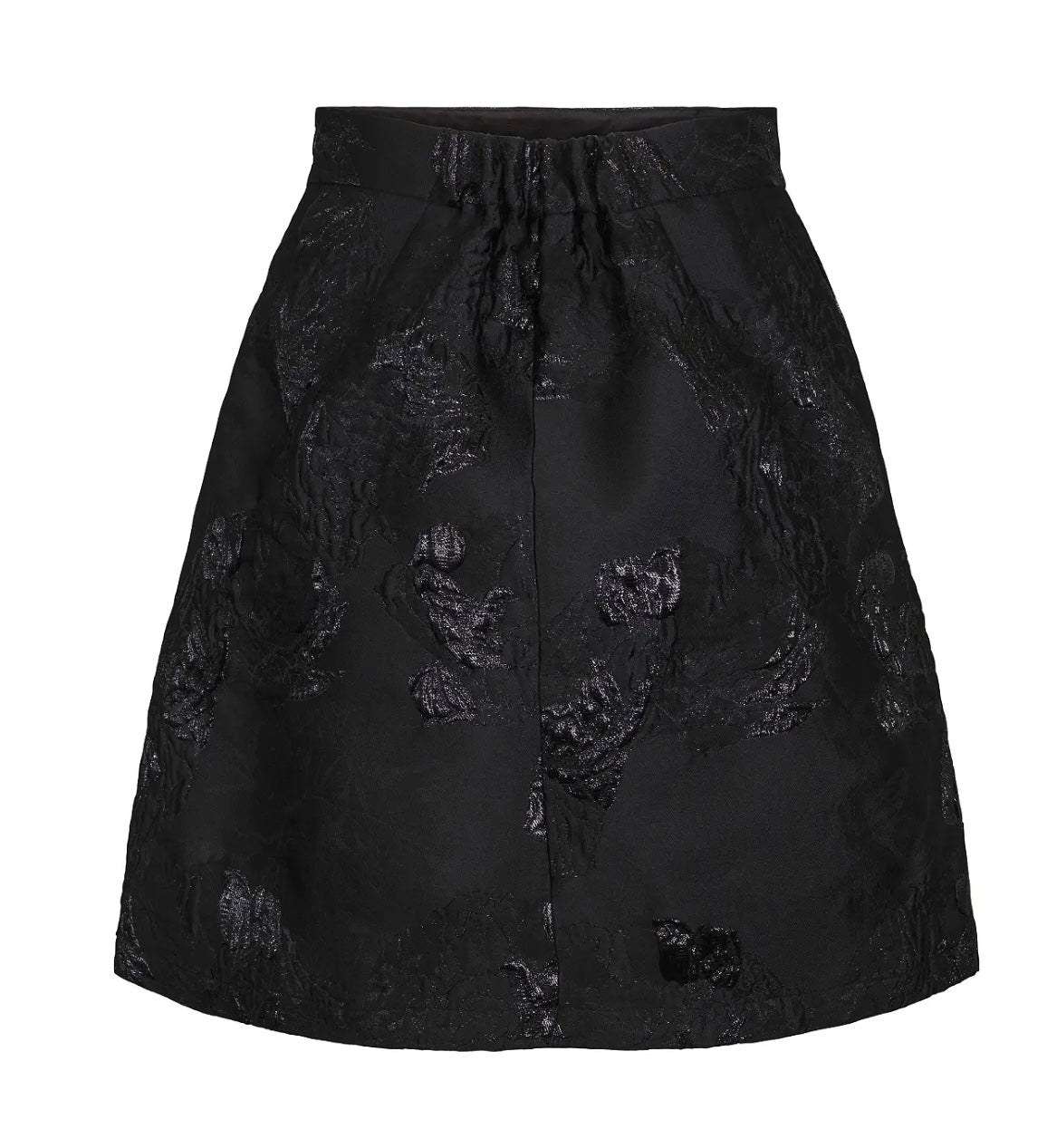 Et elegant og moderne skjørt som virkelig skiller seg ut. Dette skjørtet har en nydelig struktur i stoffet som gir et eksklusivt og festklart uttrykk. Skjørtet har en liten strikk bak i linningen.