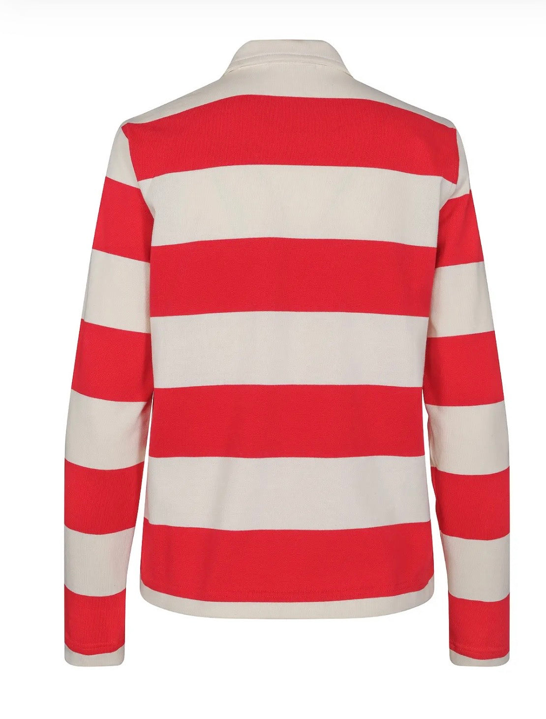 En avslappet og stilren genser i myk bomulls kvalitet med brede striper, klassisk krage og knappestolpe. Et allsidig plagg som passer både til hverdag og fritid.