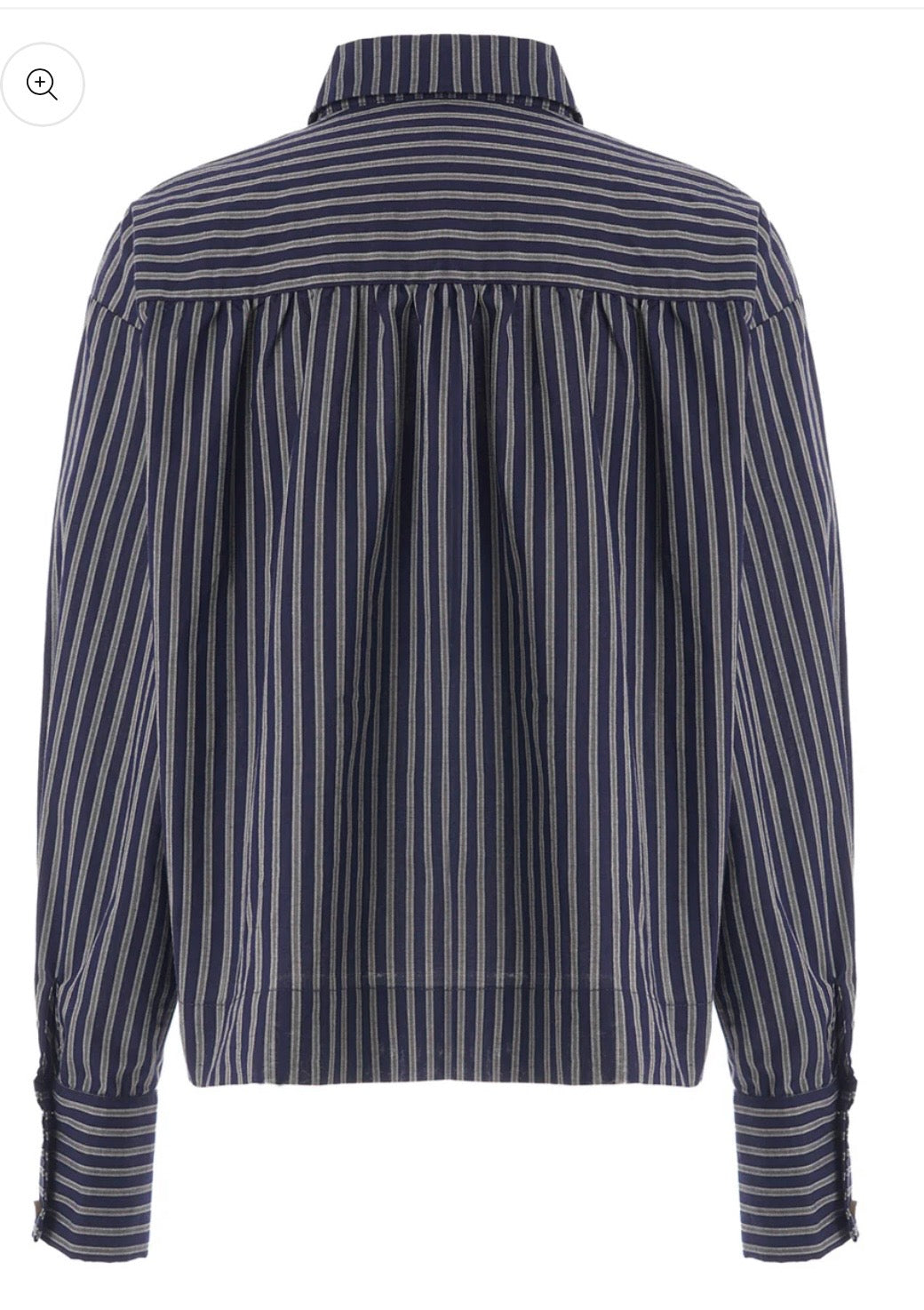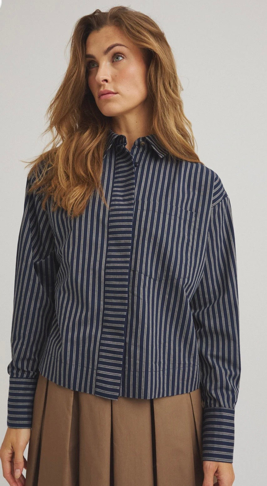 Stilig skjorte med klassisk krage, skjult knepping i front, brystlomme på venstre side og brede cuffs på ermene.