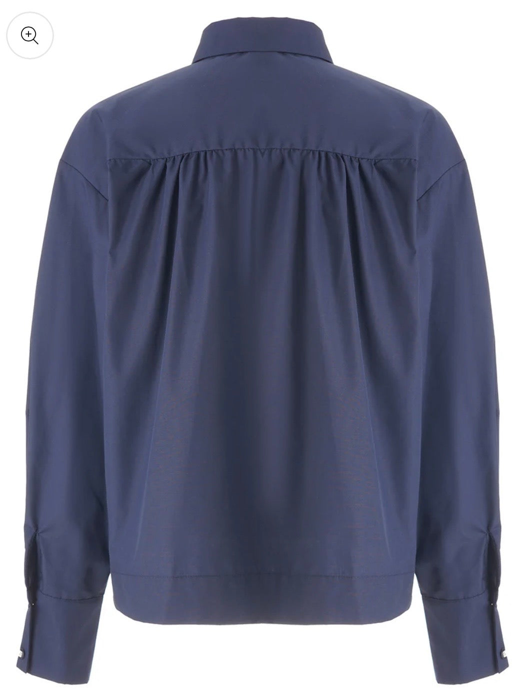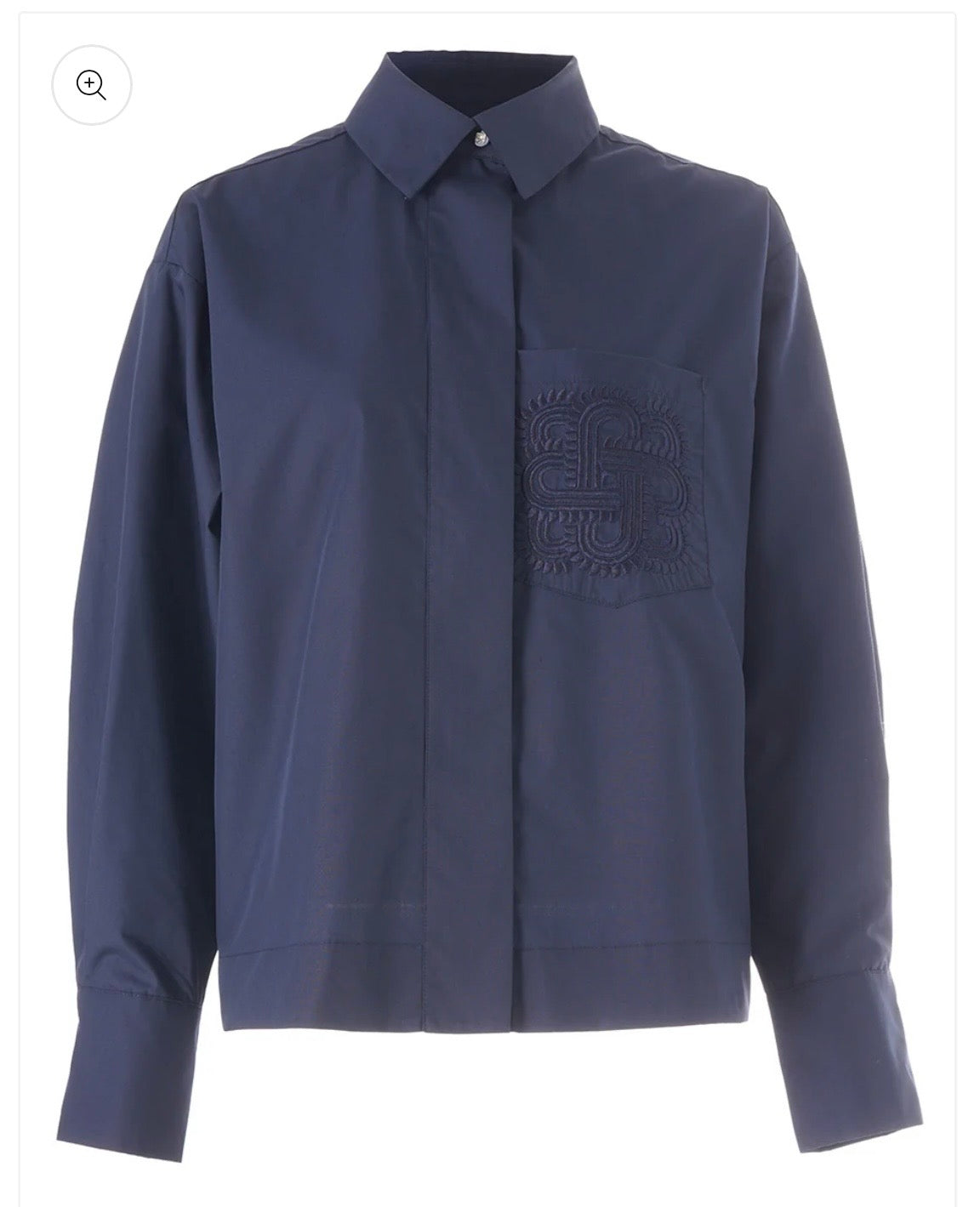 Superfin skjorte som er rett i fasongen og litt kort. Skjorten har en stor brystlomme med broderi på venstre side. Den har lange ermer med bred mansjett. Den har skjult knepping i front, klassisk krage og er lett og myk i kvaliteten.
