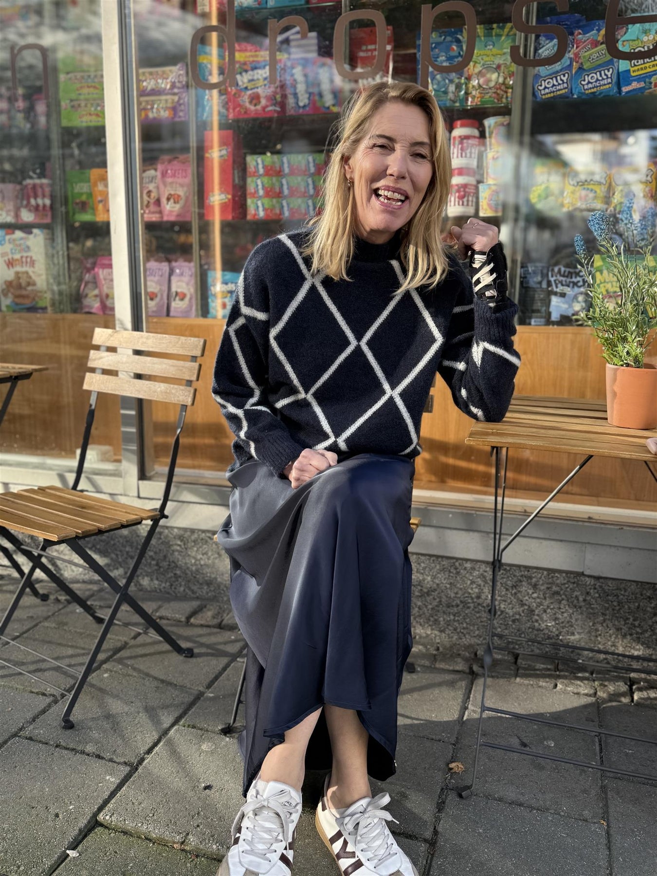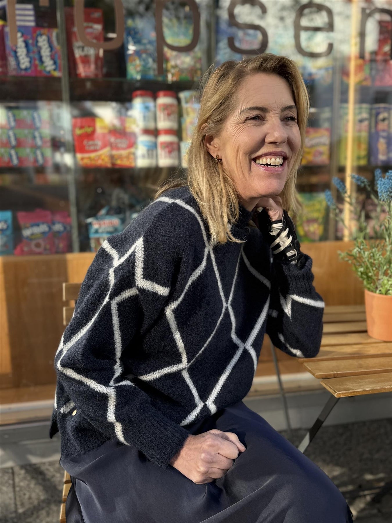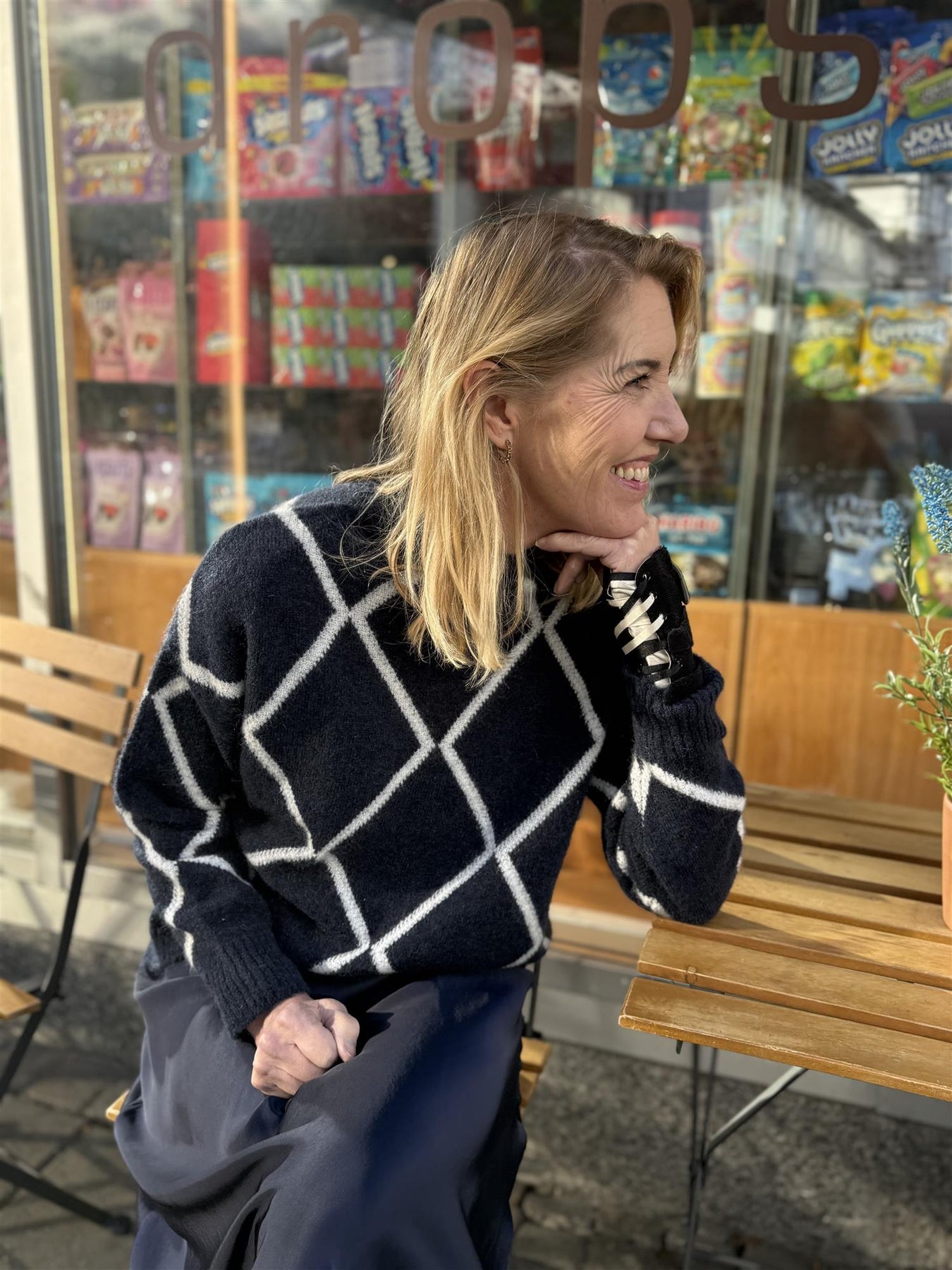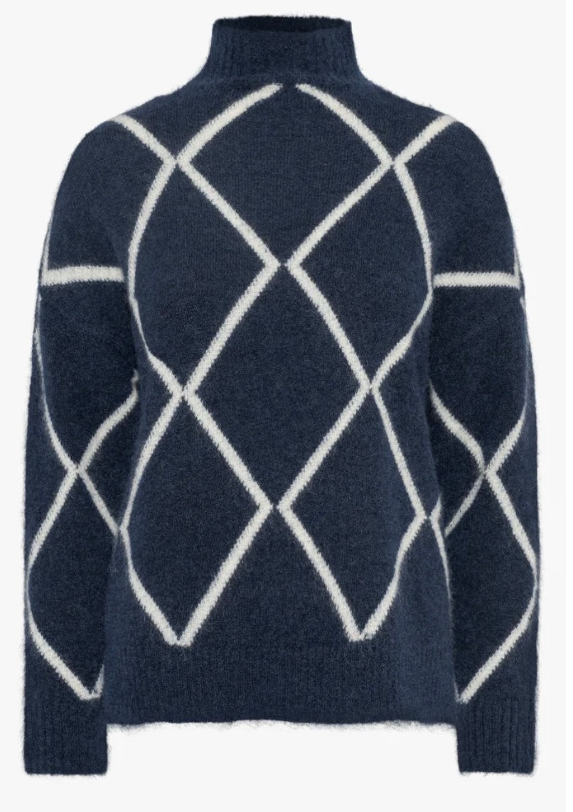 ELLY CHECK SWEATER - NAVY