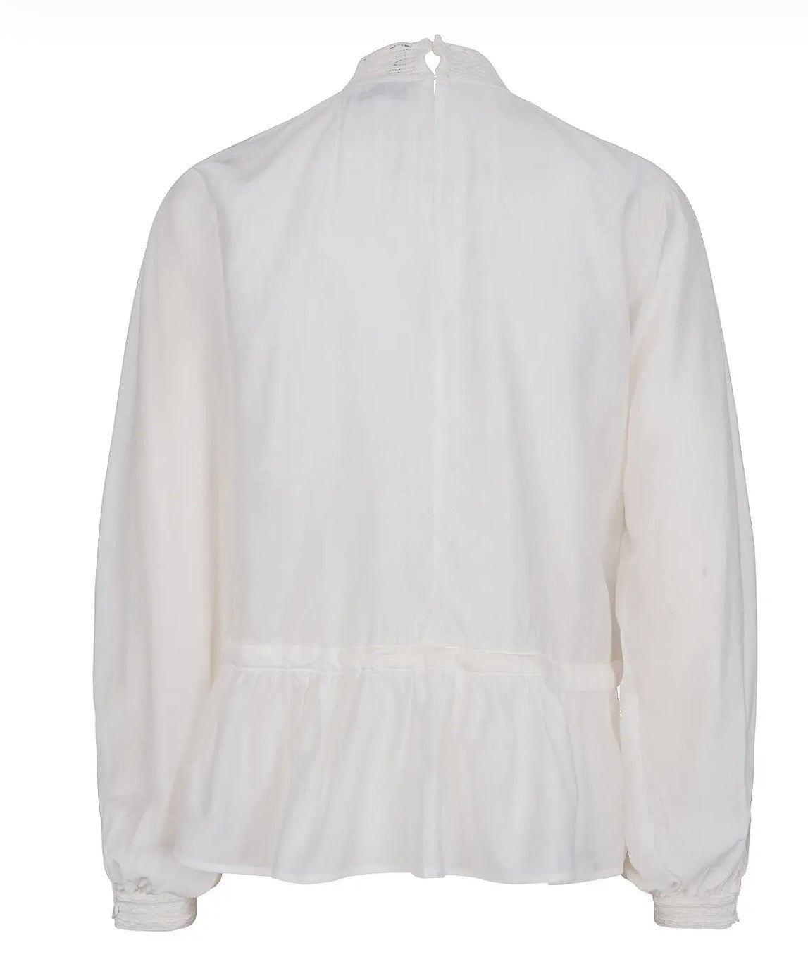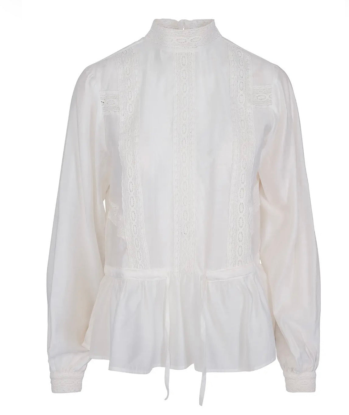 En vakker bluse for de dagene du ønsker å føle deg ekstra elegant. Laget i en luksuriøs blanding med delikate blondedetaljer. Forhøyet hals og knytting i livet.