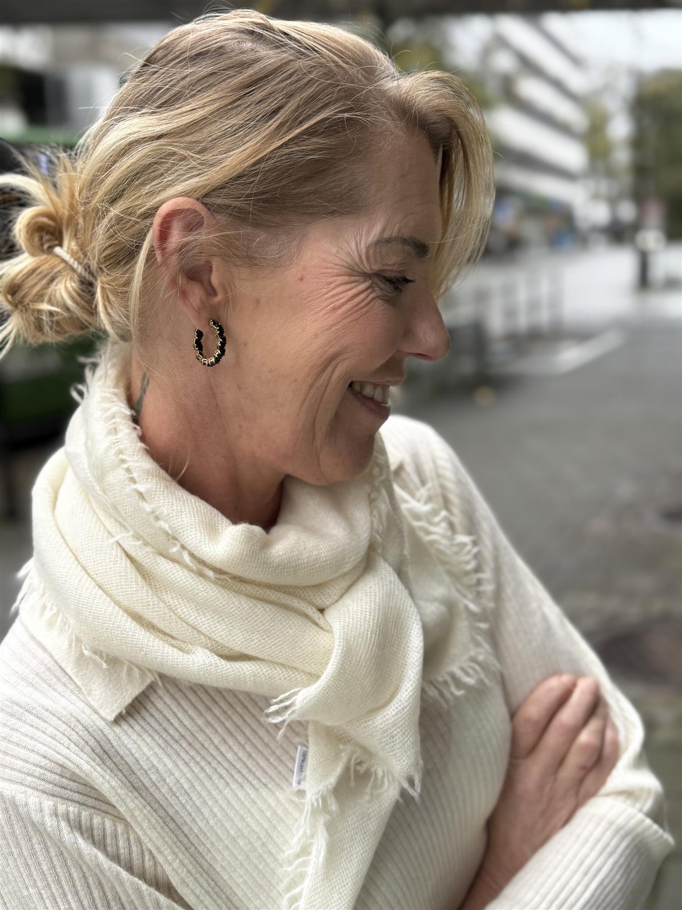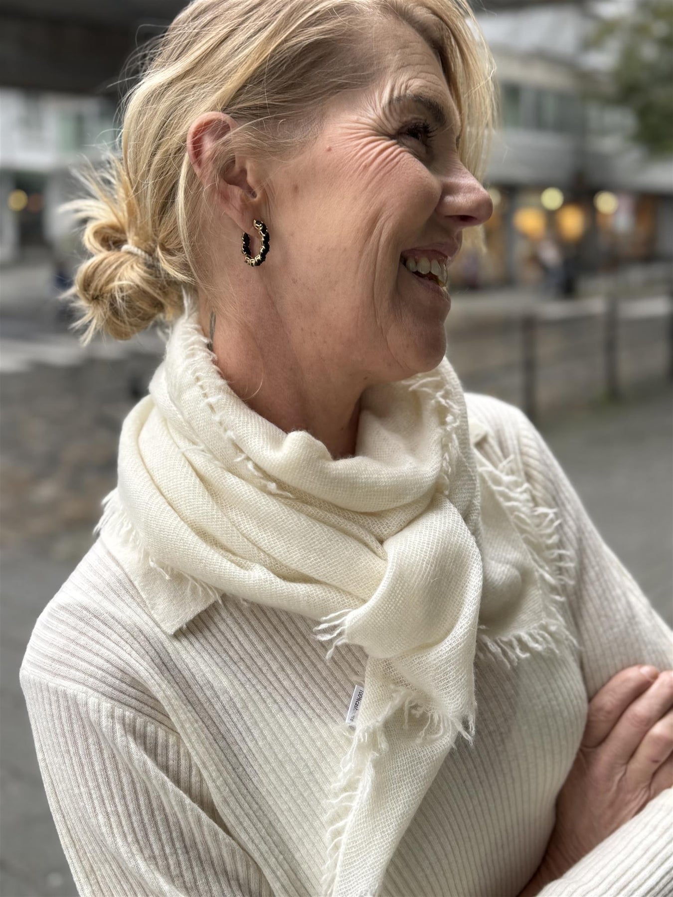 Nydelig skjerf i utrolig myk og tynn cashmere kvalitet. Frynser på kantene. Dette er firkantet, men superfin å brette det til en trekant. Du kommer til å elske det med en gang du tar i det.