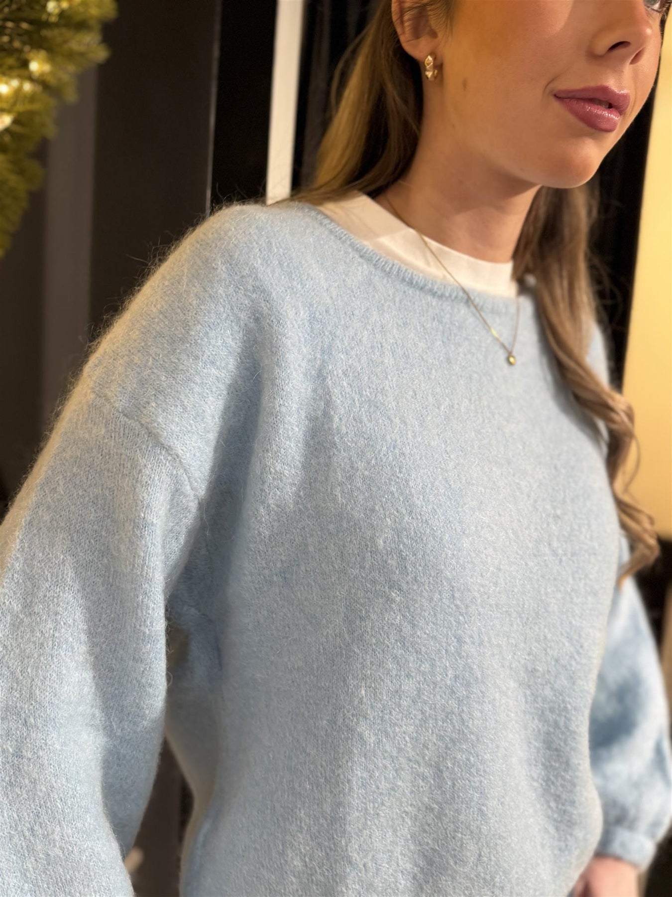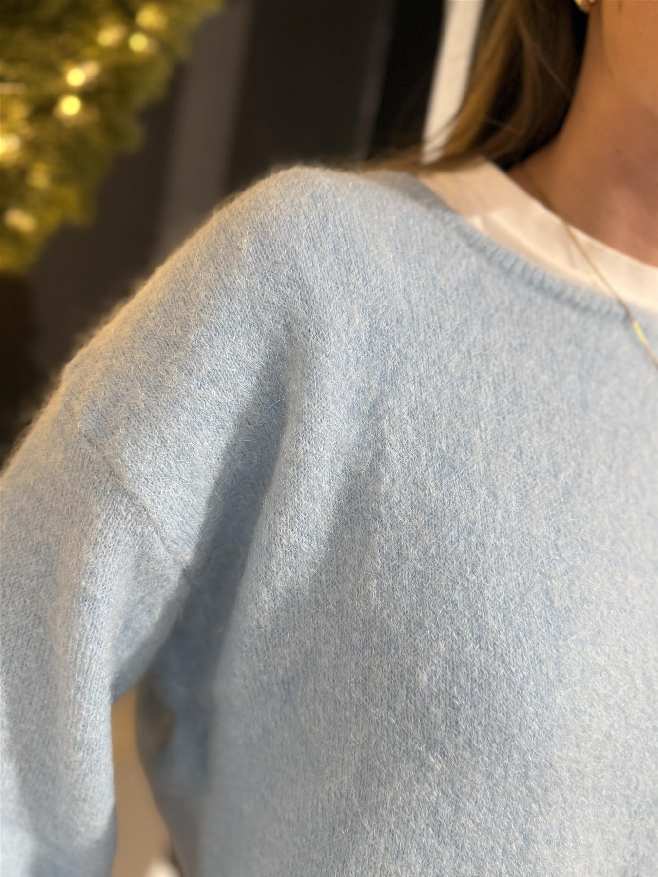 Nydelig genser med båthals og ermer med litt vidde. Disse er helt nydelige å ha på.