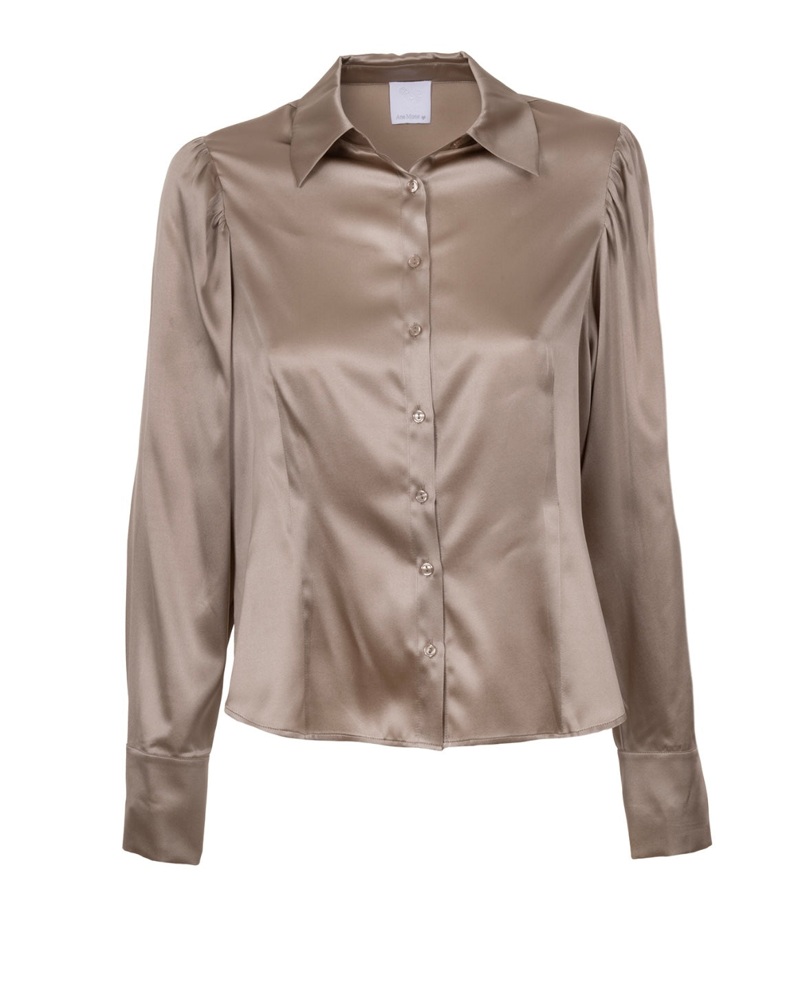 Nydelig silkebluse med krage og knepping helt ned i front. En liten puff på skuldrene. 95% silke