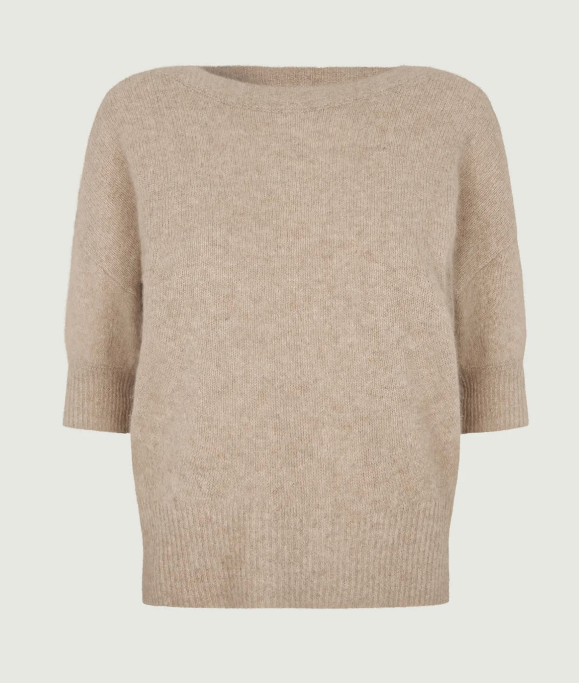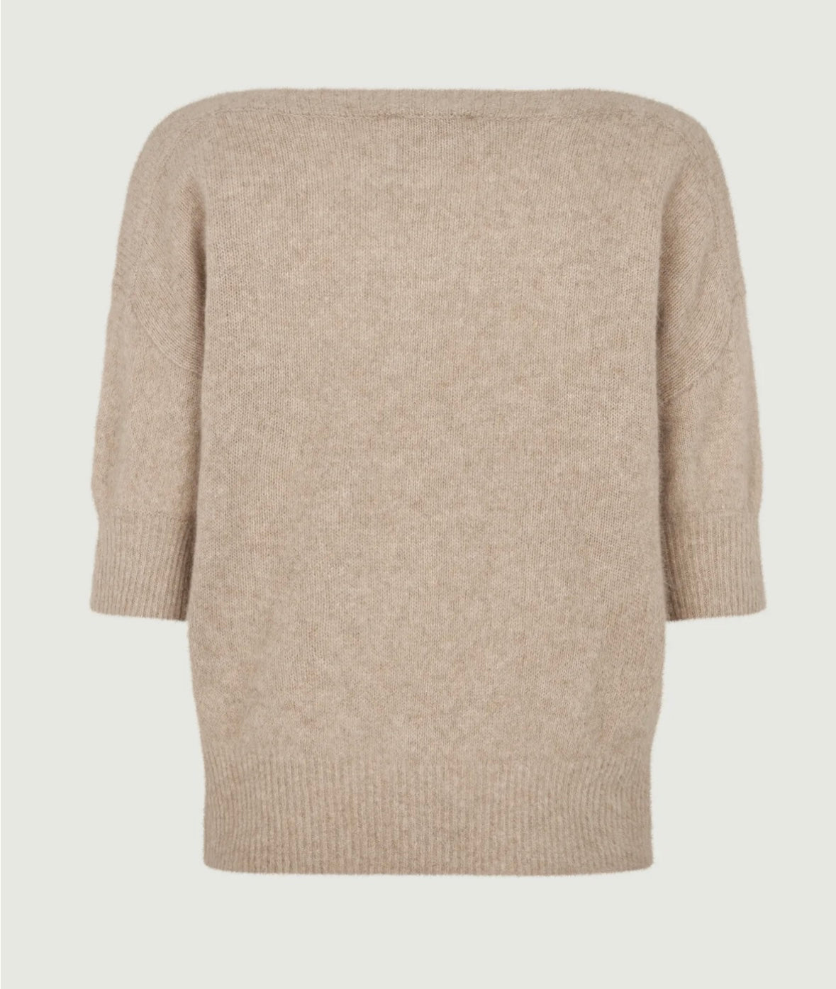 MOI er en LOOSE-fit genser med en elegant båthals og 3/4 armlengde. Den har rib detaljer på halsen, nederst og på ermene. Den har regular fit og er laget av nydelig myk, vektløst materiale med isolerende egenskaper som holder deg varm i kulden.